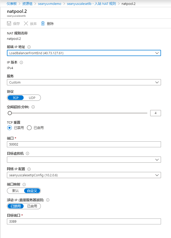 默认增加了两个NAT入站规则,是通过其他端口入站到虚拟机实例的3389端口的: