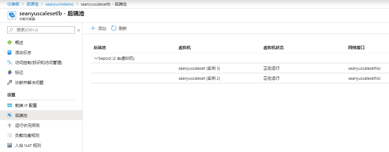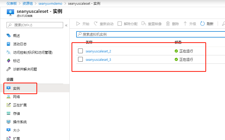 在虚拟机规模集中可以查看后端虚拟机实例: