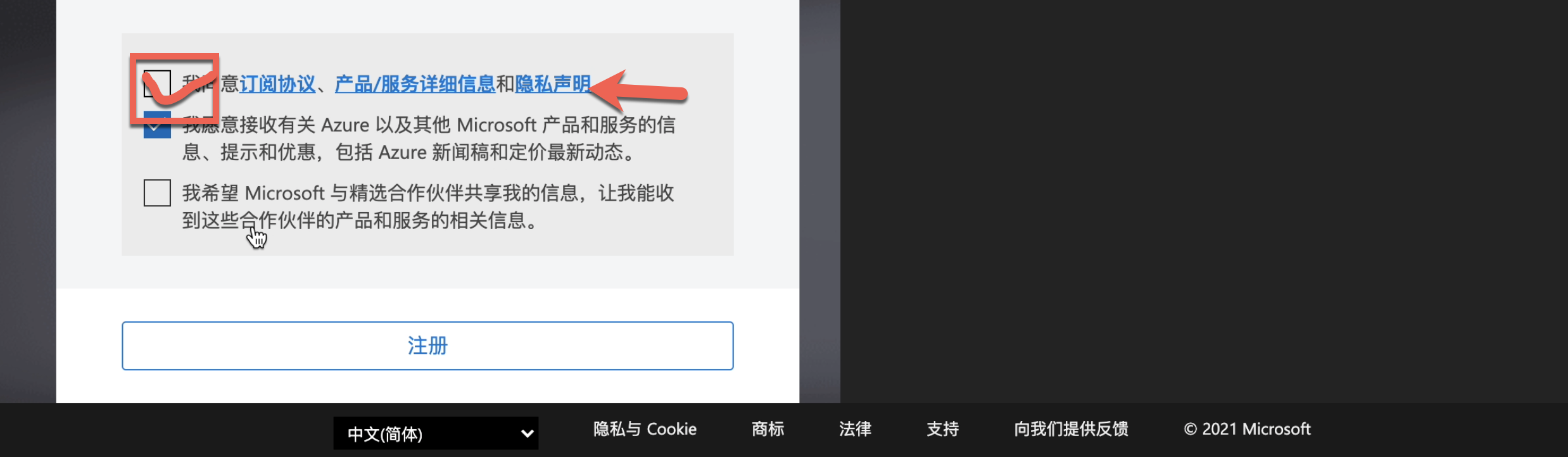 勾选 我同意,点击注册按钮
