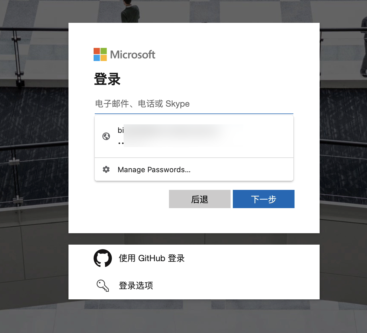 输入学校邮箱和密码,通常是 xxxx@xxx.edu.cn, 点击下一步。