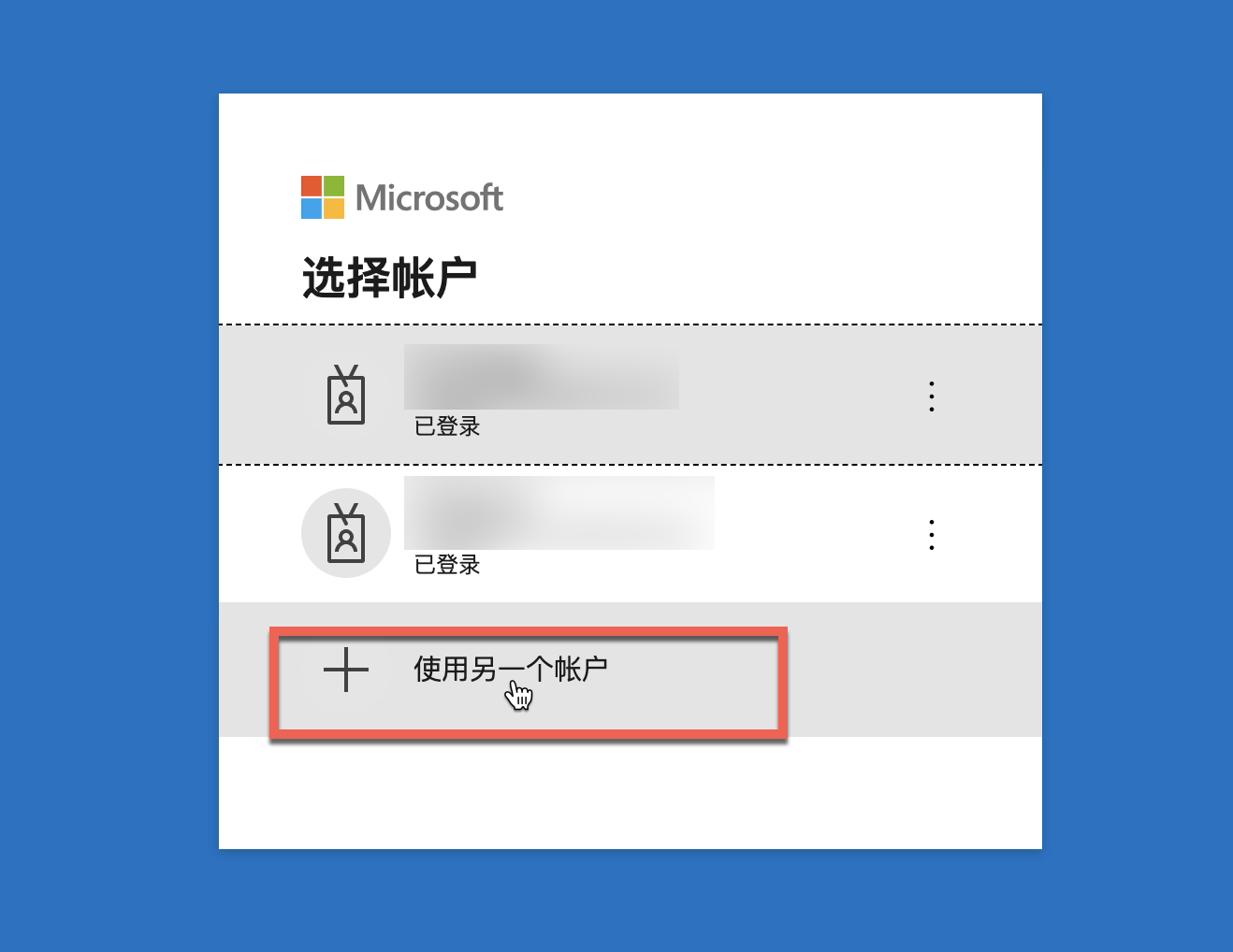 点击之后,如果出现下面的页面,则点击“使用另一个账户”