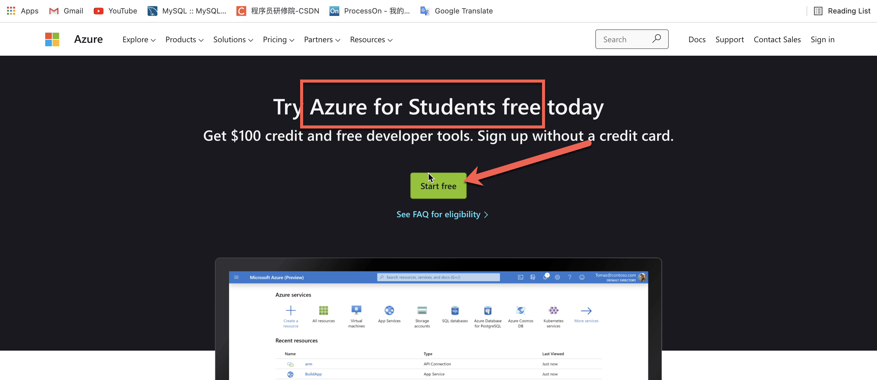 是面向学生的套餐,可提供 100 美元的额度和免费的开发人员工具。 此外,无需信用卡即可注册。
